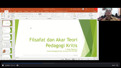 Prodi S3 Ilmu Pendidikan mengadakan kegiatan Serial Forum on Eductional Sciences yang menghardirkan Dr. Sugeng Bayu Wahyono, M.Si. Dalam paparannya, Sugeng Bayu menjelaskan bahwa Pedagogi kritis (critical pedagogy) merupakan pendekatan pembelajaran yang berupaya membantu murid mempertanyakan dan menantang dominasi serta keyakinan dan praktek-praktek yang mendominasi. Pedagogi kritis (critical pedagogy) dapat dimaknai sebagai pendidikan kritis yaitu pendidikan yang selalu...